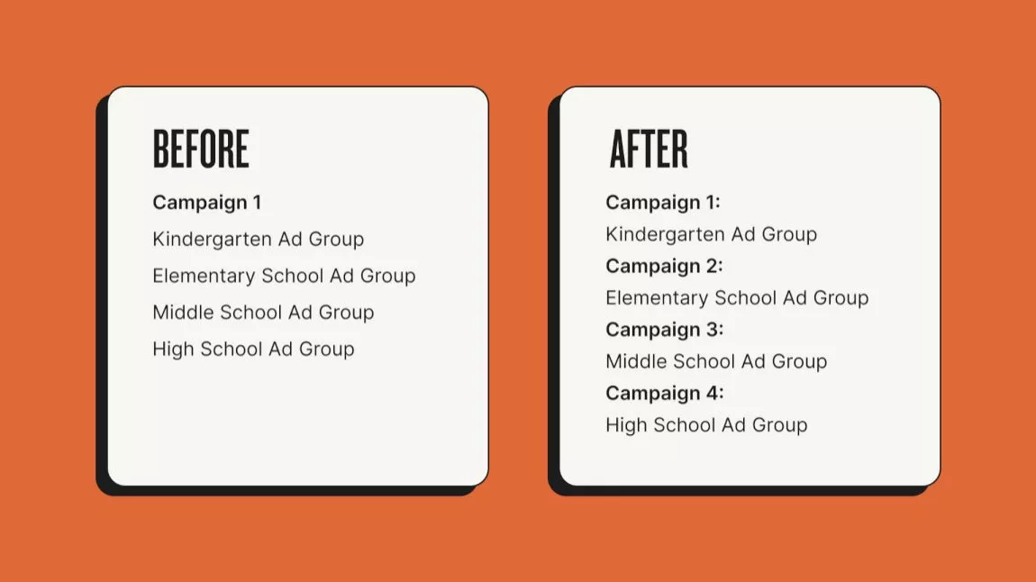 Here’s an example of how we’ve re-organized a client’s campaign structure for better success (and better budget control):