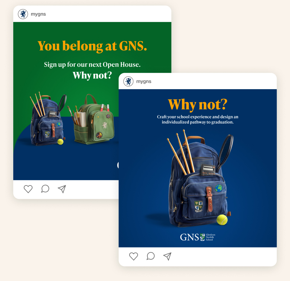 Identifying that GNS stands out by welcoming families and celebrating each student’s individuality, our campaign combined creative, web, and digital strategies to highlight GNS’s inclusive environment, address common misperceptions, and connect with families searching for the right school.