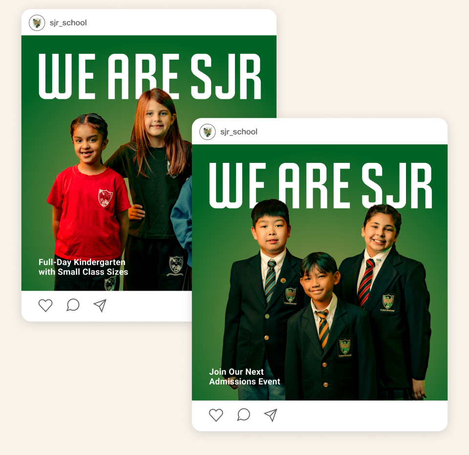 We built on our research and understanding of the school to identify the key areas that parents and guardians seek for their children, where SJR is a leader. Using the brand platform of “leadership” as a guide, we united these key messages under a clear, compelling Big Idea that communicated what it means to be part of SJR.